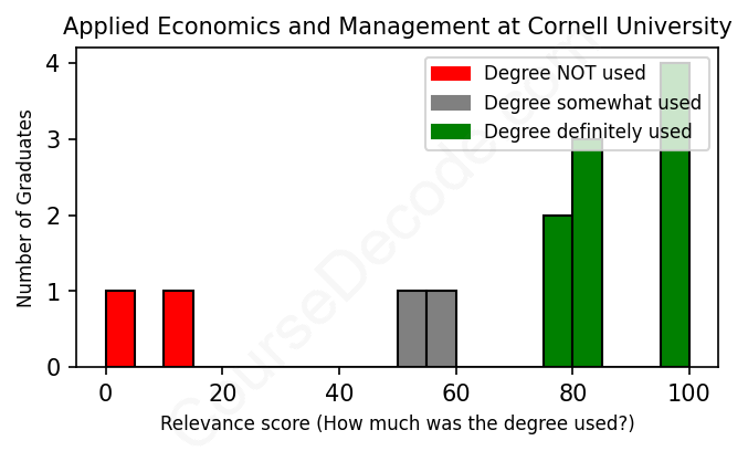 First, some facts. Of the Applied Economics and Management graduates from Cornell University we've analyzed , here's how many have used (or NOT used) their degree in their career: