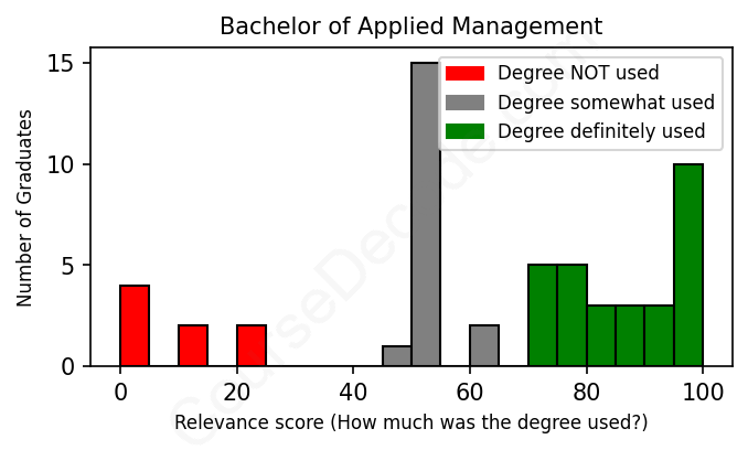 In summary, while many Applied Management graduates have secured positions that directly utilize their qualifications, a notable fraction have ventured into less relevant fields. This discrepancy highlights the diversity of career paths available and suggests that while a degree in Applied Management can open doors to managerial roles, it does not guarantee a linear trajectory towards a management-focused career for every graduate. The blend of relevant and less relevant positions illustrates the varied landscape of the job market and the range of experiences that come with an Applied Management education.