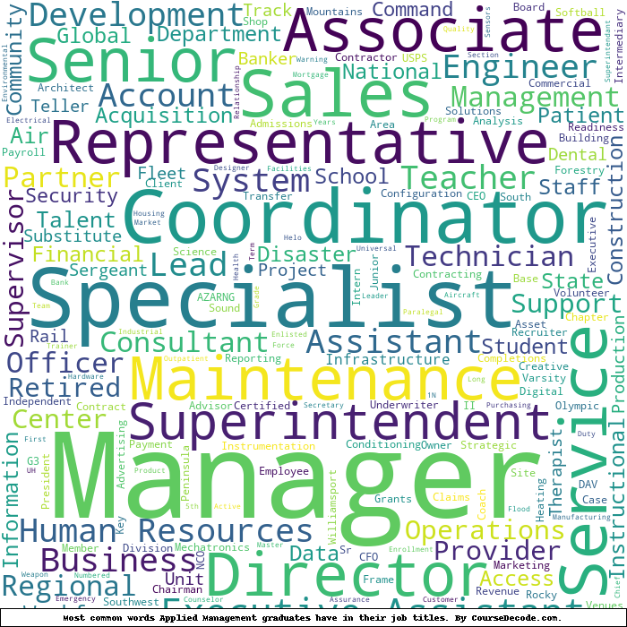 Here is a visual representation of the most common words in job titles for Applied Management graduates: