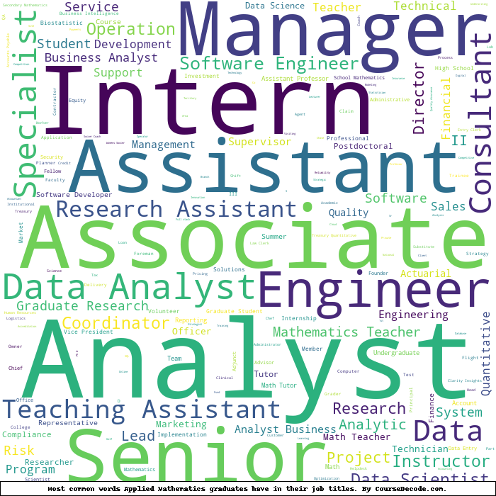 Here is a visual representation of the most common words in job titles for Applied Mathematics graduates: