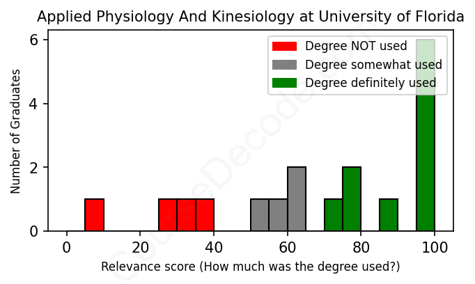 First, some facts. Of the Applied Physiology And Kinesiology graduates from University of Florida we've analyzed , here's how many have used (or NOT used) their degree in their career: