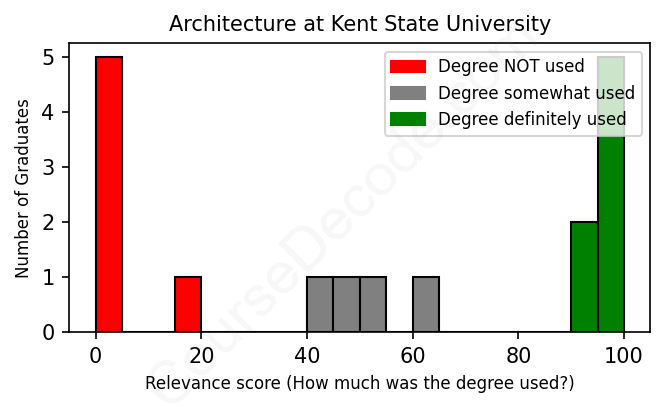 First, some facts. Of the Architecture graduates from Kent State University we've analyzed , here's how many have used (or NOT used) their degree in their career: