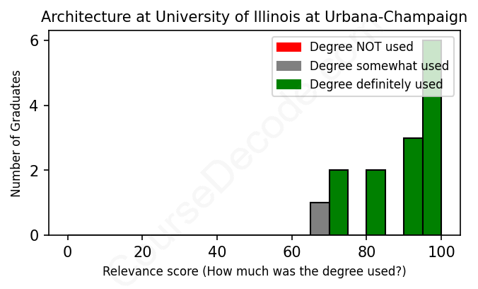 First, some facts. Of the Architecture graduates from University of Illinois at Urbana-Champaign we've analyzed , here's how many have used (or NOT used) their degree in their career: