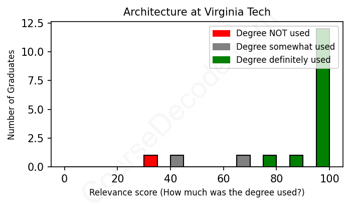 First, some facts. Of the Architecture graduates from Virginia Tech we've analyzed , here's how many have used (or NOT used) their degree in their career: