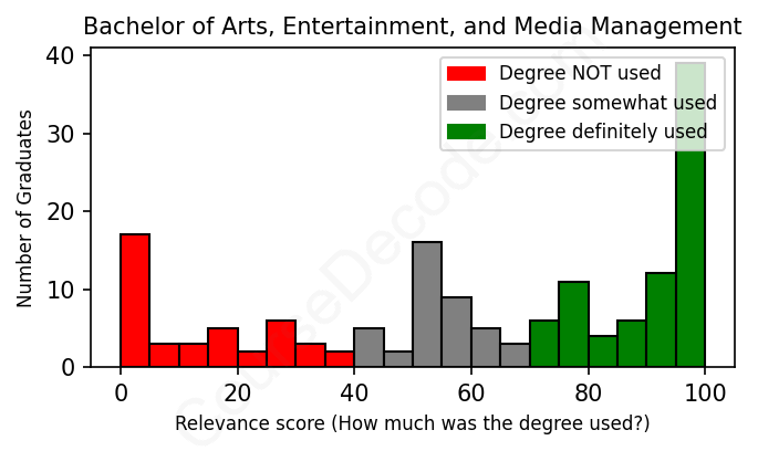 First, some facts. Of the Arts, Entertainment, and Media Management graduates we've analyzed , here's how many have used (or NOT used) their degree in their career: