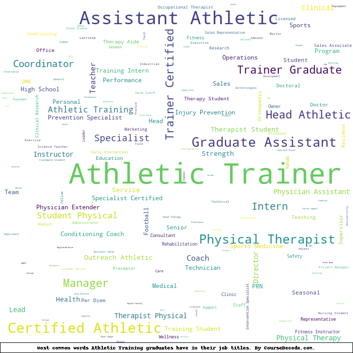 Here is a visual representation of the most common words in job titles for Athletic Training graduates: