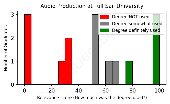 First, some facts. Of the Audio Production graduates from Full Sail University we've analyzed , here's how many have used (or NOT used) their degree in their career: