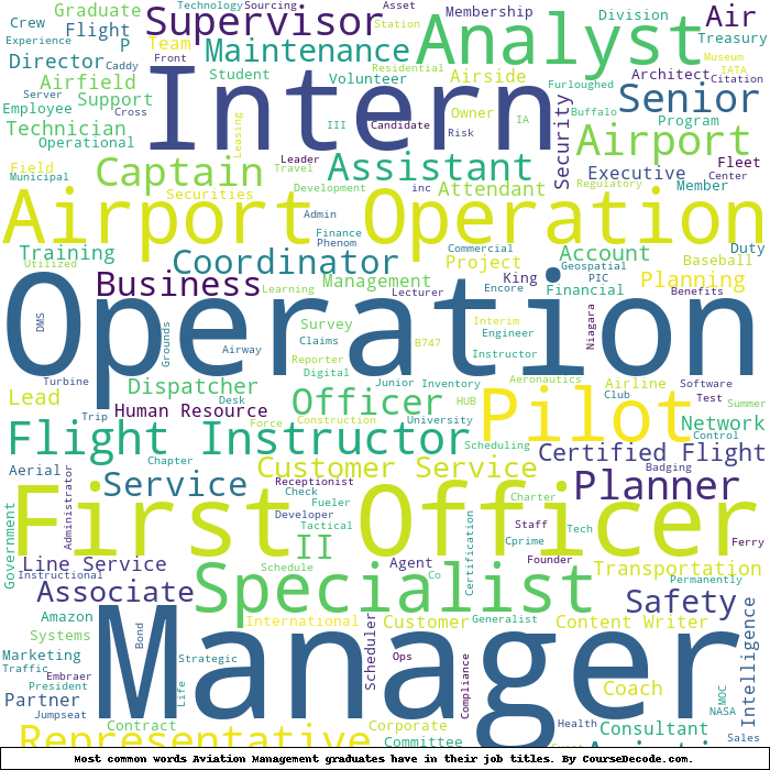 Here is a visual representation of the most common words in job titles for Aviation Management graduates: