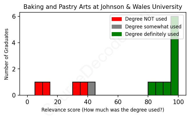 First, some facts. Of the Baking and Pastry Arts graduates from Johnson & Wales University we've analyzed , here's how many have used (or NOT used) their degree in their career: