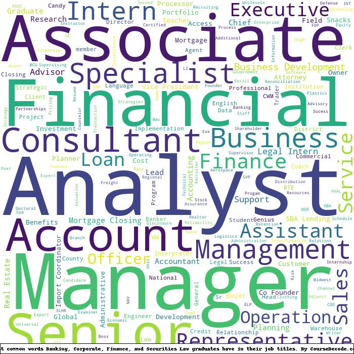 Here is a visual representation of the most common words in job titles for Banking, Corporate, Finance, and Securities Law graduates: