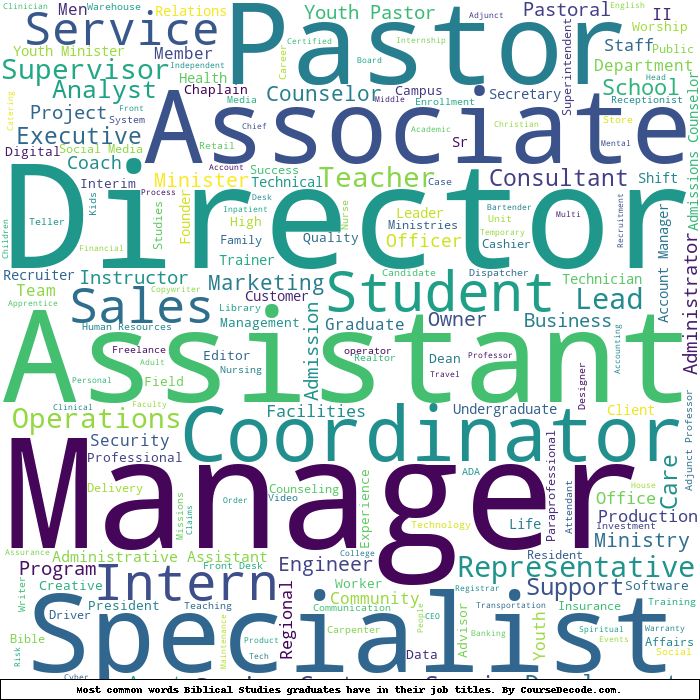Here is a visual representation of the most common words in job titles for Biblical Studies graduates: