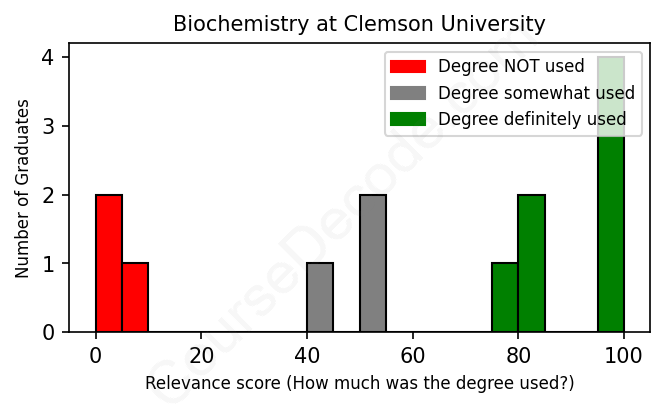 First, some facts. Of the Biochemistry graduates from Clemson University we've analyzed , here's how many have used (or NOT used) their degree in their career:
