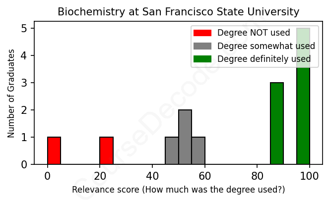 First, some facts. Of the Biochemistry graduates from San Francisco State University we've analyzed , here's how many have used (or NOT used) their degree in their career: