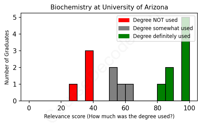 First, some facts. Of the Biochemistry graduates from University of Arizona we've analyzed , here's how many have used (or NOT used) their degree in their career: