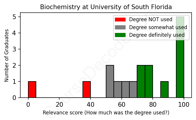 First, some facts. Of the Biochemistry graduates from University of South Florida we've analyzed , here's how many have used (or NOT used) their degree in their career: