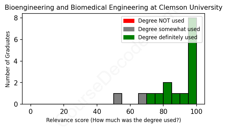 First, some facts. Of the Bioengineering and Biomedical Engineering graduates from Clemson University we've analyzed , here's how many have used (or NOT used) their degree in their career: