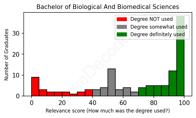 First, some facts. Of the Biological And Biomedical Sciences graduates we've analyzed , here's how many have used (or NOT used) their degree in their career:
