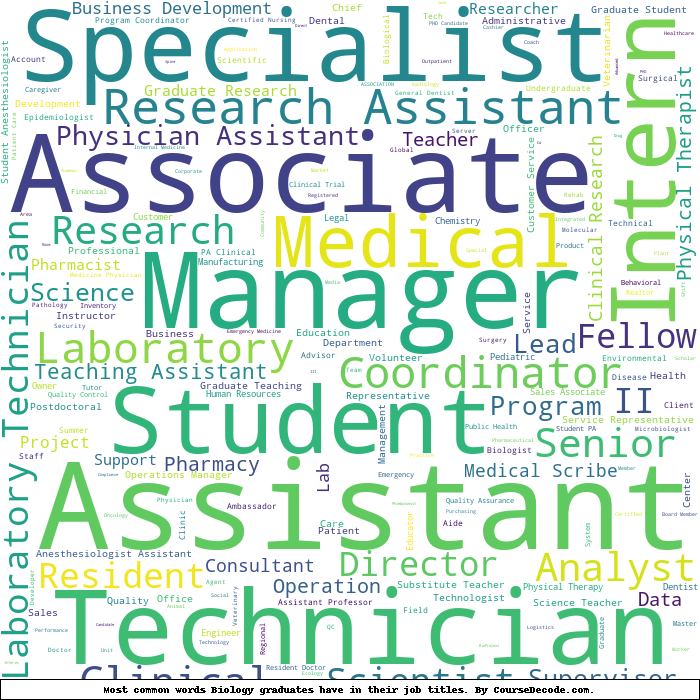 Here is a visual representation of the most common words in job titles for Biology graduates: