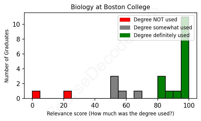First, some facts. Of the Biology graduates from Boston College we've analyzed , here's how many have used (or NOT used) their degree in their career: