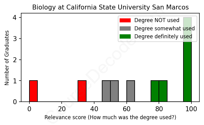 First, some facts. Of the Biology graduates from California State University San Marcos we've analyzed , here's how many have used (or NOT used) their degree in their career: