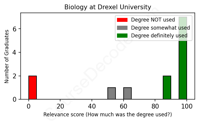 First, some facts. Of the Biology graduates from Drexel University we've analyzed , here's how many have used (or NOT used) their degree in their career: