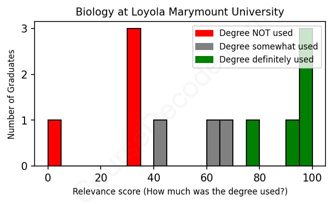 First, some facts. Of the Biology graduates from Loyola Marymount University we've analyzed , here's how many have used (or NOT used) their degree in their career: