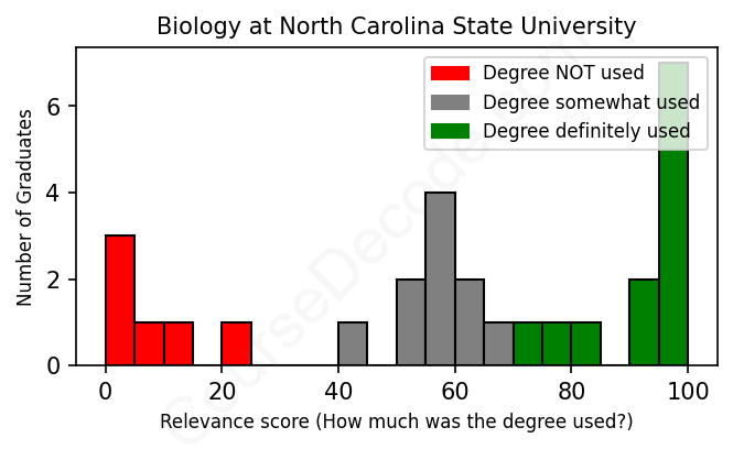 First, some facts. Of the Biology graduates from North Carolina State University we've analyzed , here's how many have used (or NOT used) their degree in their career: