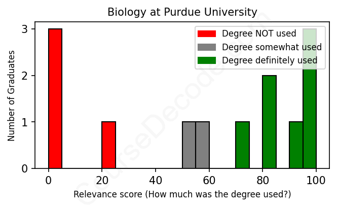 First, some facts. Of the Biology graduates from Purdue University we've analyzed , here's how many have used (or NOT used) their degree in their career: