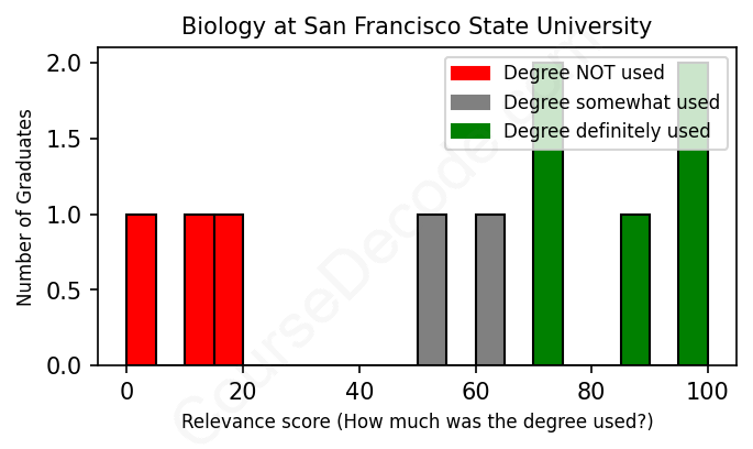First, some facts. Of the Biology graduates from San Francisco State University we've analyzed , here's how many have used (or NOT used) their degree in their career:
