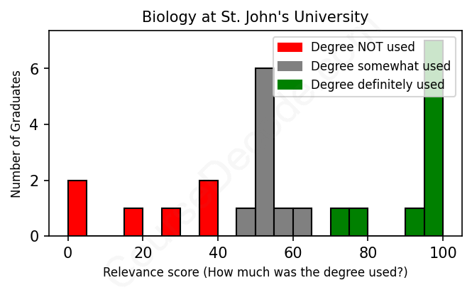 First, some facts. Of the Biology graduates from St. John's University we've analyzed , here's how many have used (or NOT used) their degree in their career: