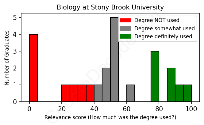 First, some facts. Of the Biology graduates from Stony Brook University we've analyzed , here's how many have used (or NOT used) their degree in their career: