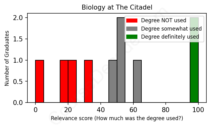 First, some facts. Of the Biology graduates from The Citadel we've analyzed , here's how many have used (or NOT used) their degree in their career: