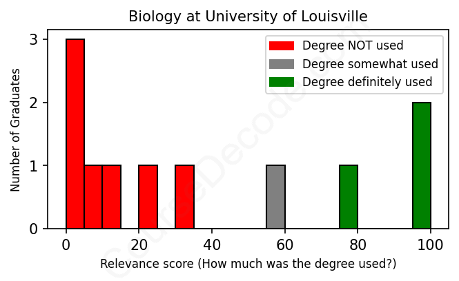 First, some facts. Of the Biology graduates from University of Louisville we've analyzed , here's how many have used (or NOT used) their degree in their career: