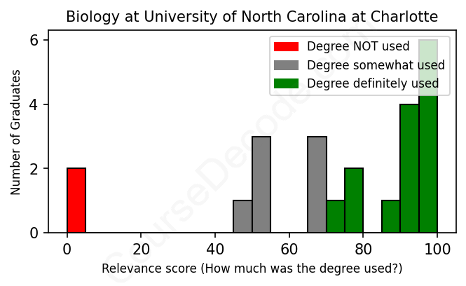 First, some facts. Of the Biology graduates from University of North Carolina at Charlotte we've analyzed , here's how many have used (or NOT used) their degree in their career: