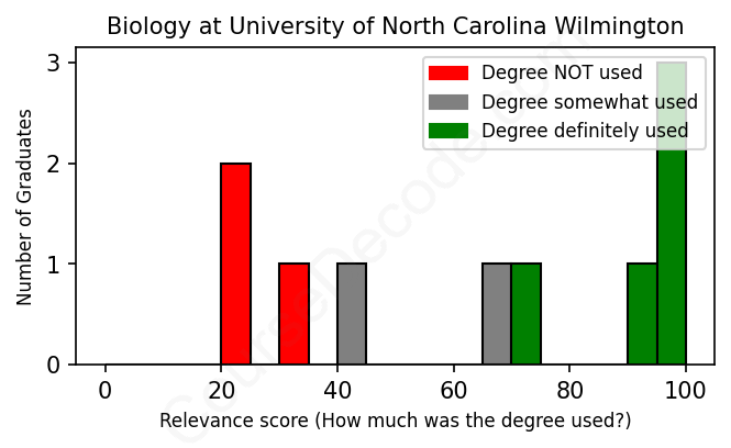First, some facts. Of the Biology graduates from University of North Carolina Wilmington we've analyzed , here's how many have used (or NOT used) their degree in their career: