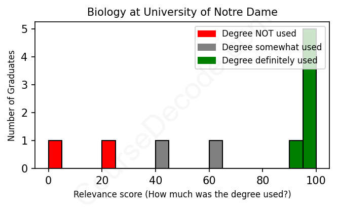First, some facts. Of the Biology graduates from University of Notre Dame we've analyzed , here's how many have used (or NOT used) their degree in their career: