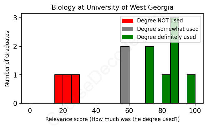 First, some facts. Of the Biology graduates from University of West Georgia we've analyzed , here's how many have used (or NOT used) their degree in their career: