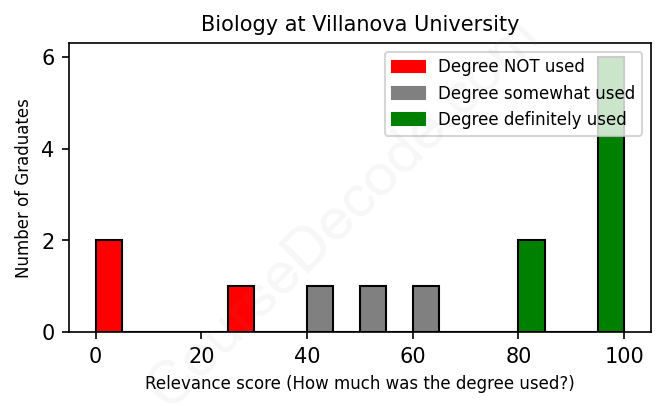 First, some facts. Of the Biology graduates from Villanova University we've analyzed , here's how many have used (or NOT used) their degree in their career: