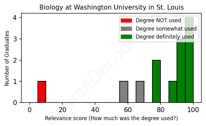 First, some facts. Of the Biology graduates from Washington University in St. Louis we've analyzed , here's how many have used (or NOT used) their degree in their career: