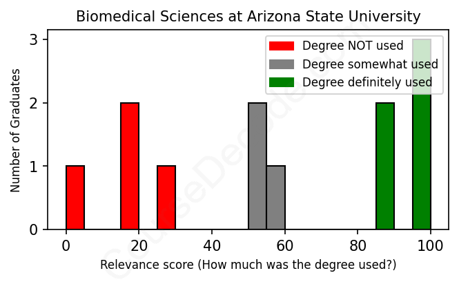 First, some facts. Of the Biomedical Sciences graduates from Arizona State University we've analyzed , here's how many have used (or NOT used) their degree in their career: