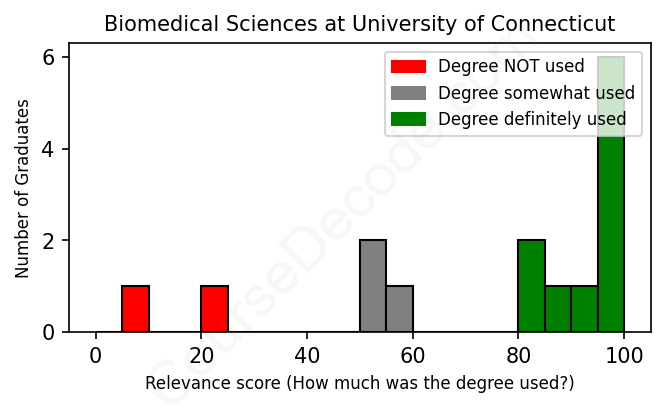 First, some facts. Of the Biomedical Sciences graduates from University of Connecticut we've analyzed , here's how many have used (or NOT used) their degree in their career: