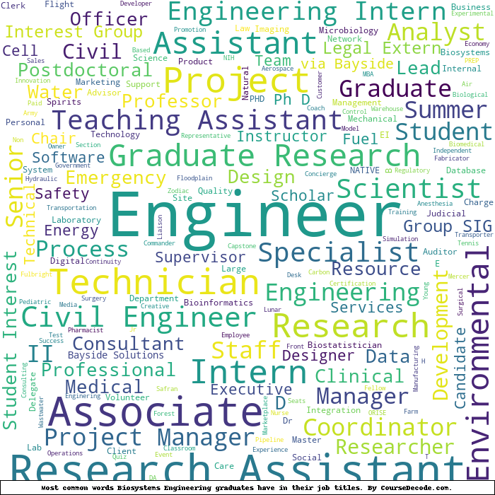 Here is a visual representation of the most common words in job titles for Biosystems Engineering graduates: