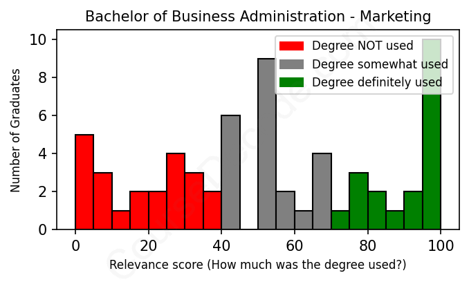 First, some facts. Of the Business Administration - Marketing graduates we've analyzed , here's how many have used (or NOT used) their degree in their career:
