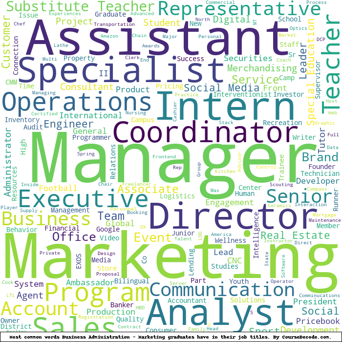Here is a visual representation of the most common words in job titles for Business Administration - Marketing graduates: