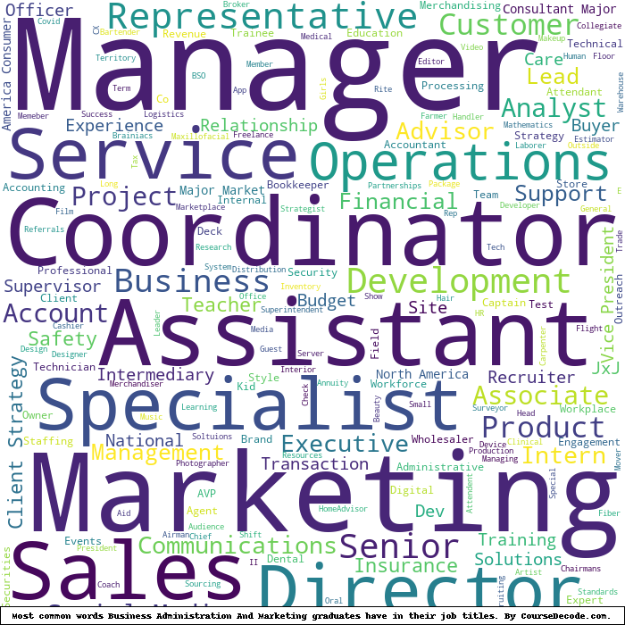 Here is a visual representation of the most common words in job titles for Business Administration And Marketing graduates: