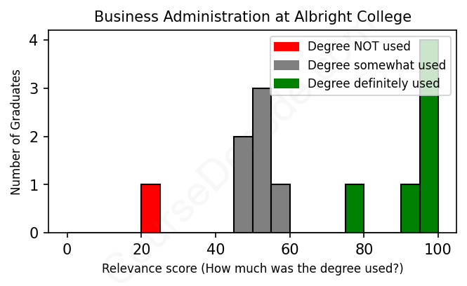 First, some facts. Of the Business Administration graduates from Albright College we've analyzed , here's how many have used (or NOT used) their degree in their career: