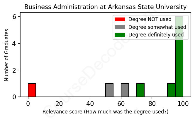 First, some facts. Of the Business Administration graduates from Arkansas State University we've analyzed , here's how many have used (or NOT used) their degree in their career: