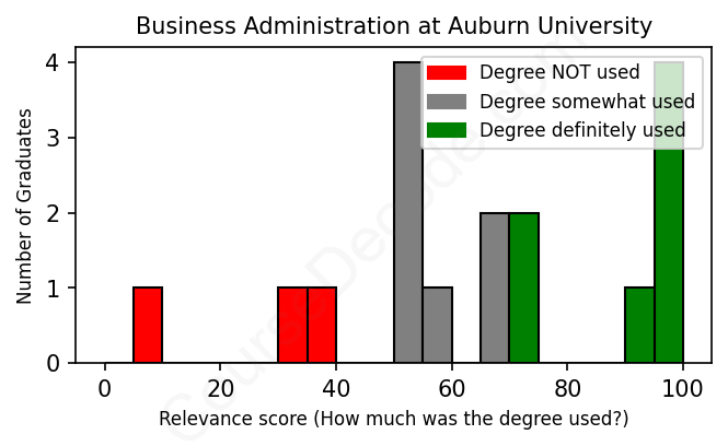 First, some facts. Of the Business Administration graduates from Auburn University we've analyzed , here's how many have used (or NOT used) their degree in their career: