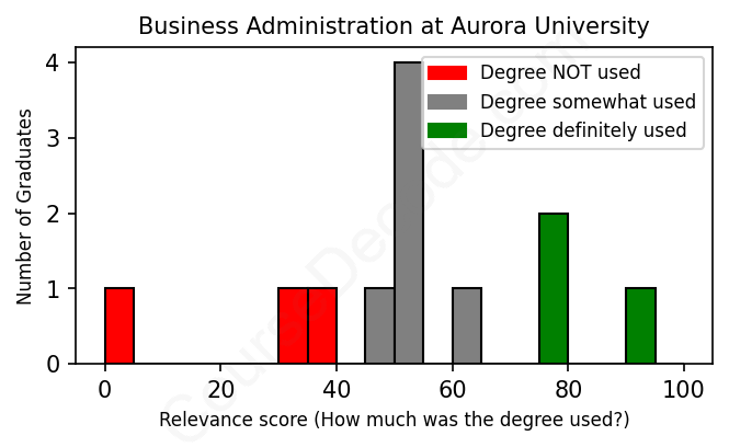 First, some facts. Of the Business Administration graduates from Aurora University we've analyzed , here's how many have used (or NOT used) their degree in their career:
