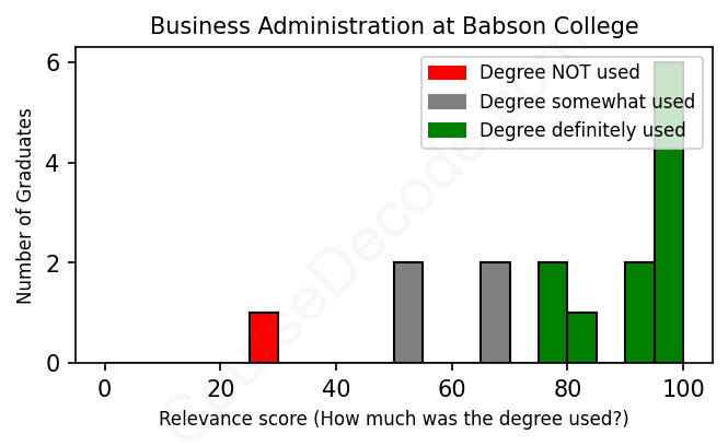 First, some facts. Of the Business Administration graduates from Babson College we've analyzed , here's how many have used (or NOT used) their degree in their career: